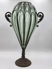 Rare Antique 19th C Murano Green Caged Blown Glass Urn Vase Centerpiece. 23 In