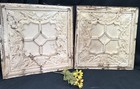Antique Vintage Pair Shabby Tin Ceiling Silver Panels 18" Sq. Chic Old 524-24b