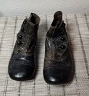 Vintage Black Leather Lace-up Baby Shoes Size 2 Doll Antique Vg Condition