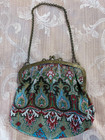Antique Hand Beaded Metal Frame Floral Handbag Purse Bag Stunning