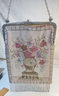Antique Micro Beaded Bag French Purse Floral Roses Gilt Frame Rare