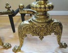 Antique Early Andirons Fireplace Large Brass Ornate Victorian Fire Dogs