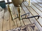 Antique Brass & Cast Iron Lows Fireplace Andirons Wood Log Holders, Fire-dogs