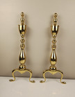 Pair Vintage Antique Turned Baluster Brass Fireplace Andirons Fire Dogs 21"