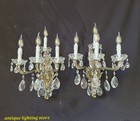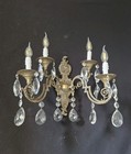 Vintage Antique Large Of French Brass Crystal 4 Lights Sconce Wall Light