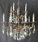 Antique Chandelier Rococo Crystal 10-light Brass Metal French Hollywood Regency