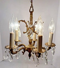 Vintage French Petite 1950’s 4-arm Brass & Crystal Chandelier Cut Glass Prisms!