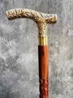 Antique Hand Carved Wooden Walking Stick Cane Solid Brass Handle Vintage Gift