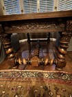 French Antique Tiger Oak Renaissance Dining Table | Carved Legs C.1880