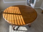 Antique Solid Oak Round Dining Table With 4 Leaves