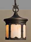 Antique Hanging Pendant Light Fixture With Curved Lined Slag Glass Panels