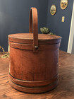 Antique Large Wooden Firkin Original Lid & Handle Sewing Basket Folk Art Barrel