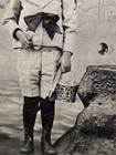 Old Vintage Antique 1880 Tintype Photo Young Girl Boy Beach Bather Sand Pail