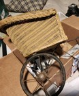 Vintage Wicker Ratan Doll Baby Buggy Canopy Metal Spoked Wood Wheels