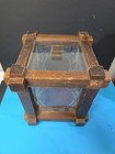 Vintage Rustic Wood Glass Display Case Etched Floral Cube Box Lift Top 14" Tall
