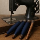 Antique Vintage Industrial Wooden 7.5" Spool Spindle Makers Bobbin, Blue Thread