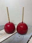 Pair Fake Red Candy Apples 6" Artificial Glossy Fruit Display Prop Ornament Set
