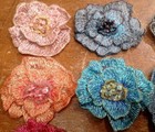 Applique Embroidered Metallic Layered Beads Sequins 3x7" Flowers 1pc