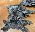 Black Lace Applique 20" By 7" Embroidered 3d Flowers And Beaded With Perls