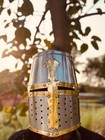 Medieval Crusader Great Helm With Brass Cross Templar Knight Helmet 18 Gauge