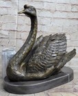 Bronze Metal Swan Bird Sculpture Statue Figure Decor Marble Base Signed Original