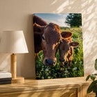 Serene Farm Scene Featuring A Close-up Of A Brown Cow And Wall Art Canvas Print