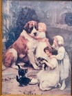 Bernard Dog Girls Kittens Framed Fine Art Signed Arthur J Elsley 16x12