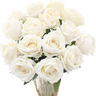 12pcs White Roses Artificial Flowers Bulk Real Touch Roses Fake White Silk Ro...