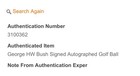 President George W Bush Signed Autographed Top Flite Golf Ball