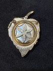 Vtg Avon Solid Perfume Compact Brooch Locket Golden Leaf Shape Pearl Unused Lnc