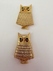 Avon Jewelled Owl Solid Perfume Compact Brooch 1960s Gold Tone 60s Vtg