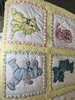 Vintage Baby Blanket Embroidered Quilt Animals Blue Handmade