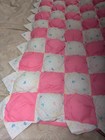 Vintage Handmade Baby Crib Tied Quilt Blanket Bedding Pink Border Nursery Girls