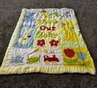 Vintage Baby Crib Quilt Blanket Letters Animals Dogs Cats Rabbits 52" X 68"