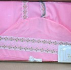 Vtg Embroidered Diaper Stacker Holder Hanging Bag Battenberg Lace & Pink Roses