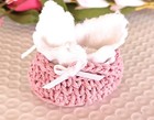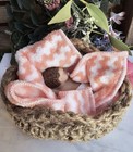 Tiny Pink Jute Moses Basket Bed For Miniature Figures, Under 3 Inches, Collector