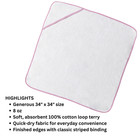 New Kids Hooded Bath Towel • Cotton Terry Loop • 34 X 34 • Pink Seersucker Edge