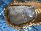 Vintage Woven Bassinet Baby Moses Pet Carrier Doll Basket Handles Bedding