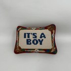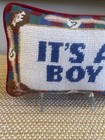 Vintage Its A Boy Needlepoint Pillow Baby Shower Gift Nursery Decor Velvet Back