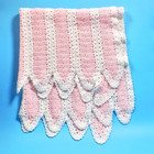 Cuddly Soft Pink White Crochet Baby Blanket 34x36 Afghan Picot Sweet Girl Cozy