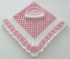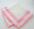 Soft Cuddly White And Pink Crocheted New Baby Blanket W Hat Multi Purpose