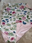 Ava Olivia Floral Baby Blanket Pink White Green Flowers Roses Soft Plush Lovey