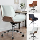 Mid Back Leather Office Executive Chair Lumbar Support Padded Black White Swivel