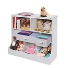 Combo Bin Wood Toy Storage Organizer W/ 3 Baskets 2 Open Shelves Rectangle White