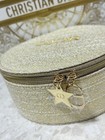 Dior Beauty Pouch Beige Makeup Bag Round Toiletry Travel Case With Mirro In Box