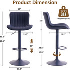 Modern Navy Blue Adjustable Bar Stools Set Of 2 With Padded Back And Swivel
