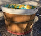 Wooden Slatted Gathering Basket W/ Moving Handle Rustic Decor Farmhouse Vintage
