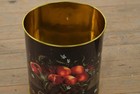 Metal Waste Bin With Hand-painted Fruit Basket Design – Rustic Farmhouse Decor