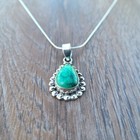Turquoise Teardrop Pendant 925 Sterling Silver Boho Necklace Gift Women Natural