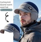 Outdoor Brim Ski Hat Men Women Knit Hat Winter Warm Stretch Beanie Ear Flaps Cap